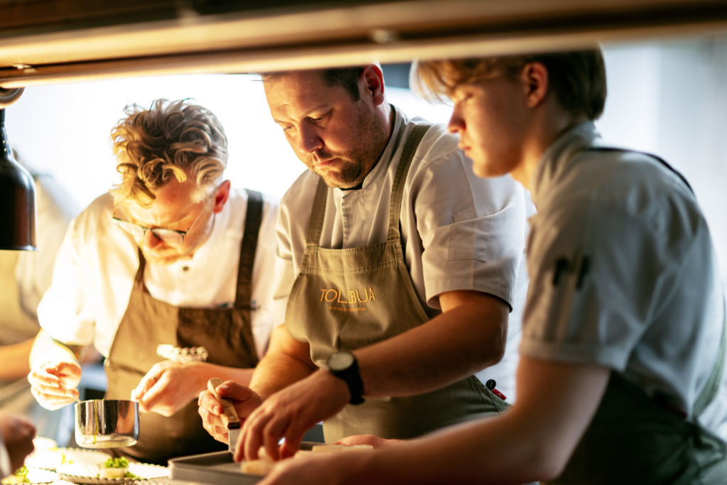 Tollbua er stolte av å støtte fremtidens unge fagfolk på kjøkkenet. Vi er heldige som har fem lærlinger som jobber heltid på kjøkkenet, hvor de lærer faget sitt og bidrar til vår gastronomi. Lærlingeordningen er en sentral del av vår filosofi for en bærekraftig bransje og en meningsfull arbeidsplass. Du kan lese mer om dette engasjementet her.